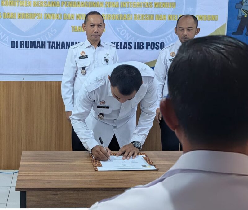 TLii|Sulteng – Rumah Tahanan Negara Kelas IIB Poso resmi mendeklarasikan komitmennya untuk mewujudkan Zona Integritas menuju Wilayah Bebas dari Korupsi (WBK) dan Wilayah Birokrasi Bersih dan Melayani (WBBM) pada tahun 2025.