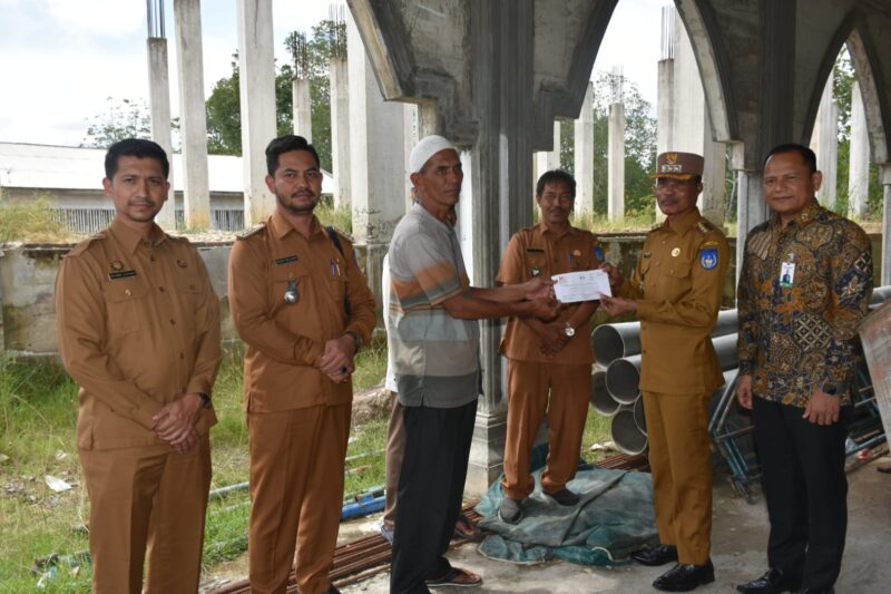Pj Walikota Langsa menyerahkan bantuan semen untuk membantu pemabangunan masjid (Foto : Humas Diskominfo Kota Langsa)