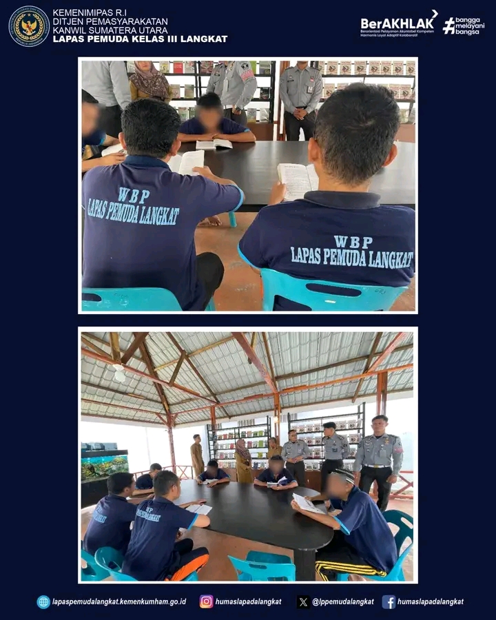 TIMELINES INEWS INVESTIGASI, Lapas Pemuda Langkat Dalam rangka peningkatan pembinaan dan minat baca WBP, Lembaga Pemasyarakatan Pemuda Kelas III Langkat terima kunjungan Dinas Kearsipan dan Perpustakaan Kab. Langkat, Selasa (07/01/2024).