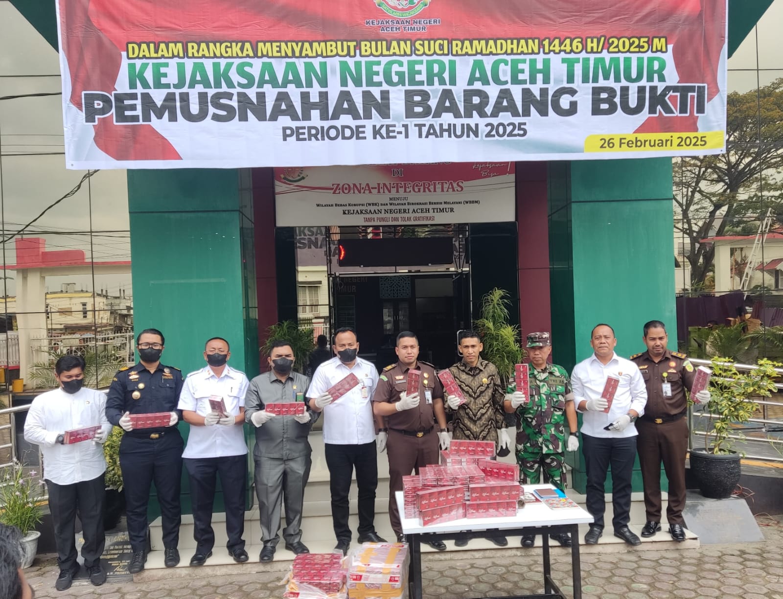 Kegiatan ini sesuai Putusan Pengadilan Negeri Idi No 204/Pid.Sus/2024/PN Idi dimusnahkan di halaman kantor Kejaksaan Aceh Timur. Pemusnahan ini merupakan hasil penindakan rokok ilegal Bea Cukai Langsa pada tanggal 05 September 2024 yang berhasil menindak 1.643.260 (satu juta enam ratus empat puluh tiga ribu dua ratus enam puluh) batang, dimana pada tanggal 12 Desember 2024 bertempat di halaman Kantor Bea Cukai Langsa dan Tempat Pembuangan Akhir Gampong Pondok Keumuning, Kecamatan Langsa Lama, Kota Langsa sebanyak 643.260 (enam ratus empat puluh tiga ribu dua ratus enam puluh) batang telah dimusnahkan.