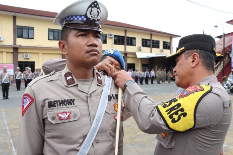 Dalam apel gelar pasukan tersebut Kapolres bertindak inspektur upacara penyematan tanda pita Operasi Keselamatan Toba 2025 kepada perwakilan personil.