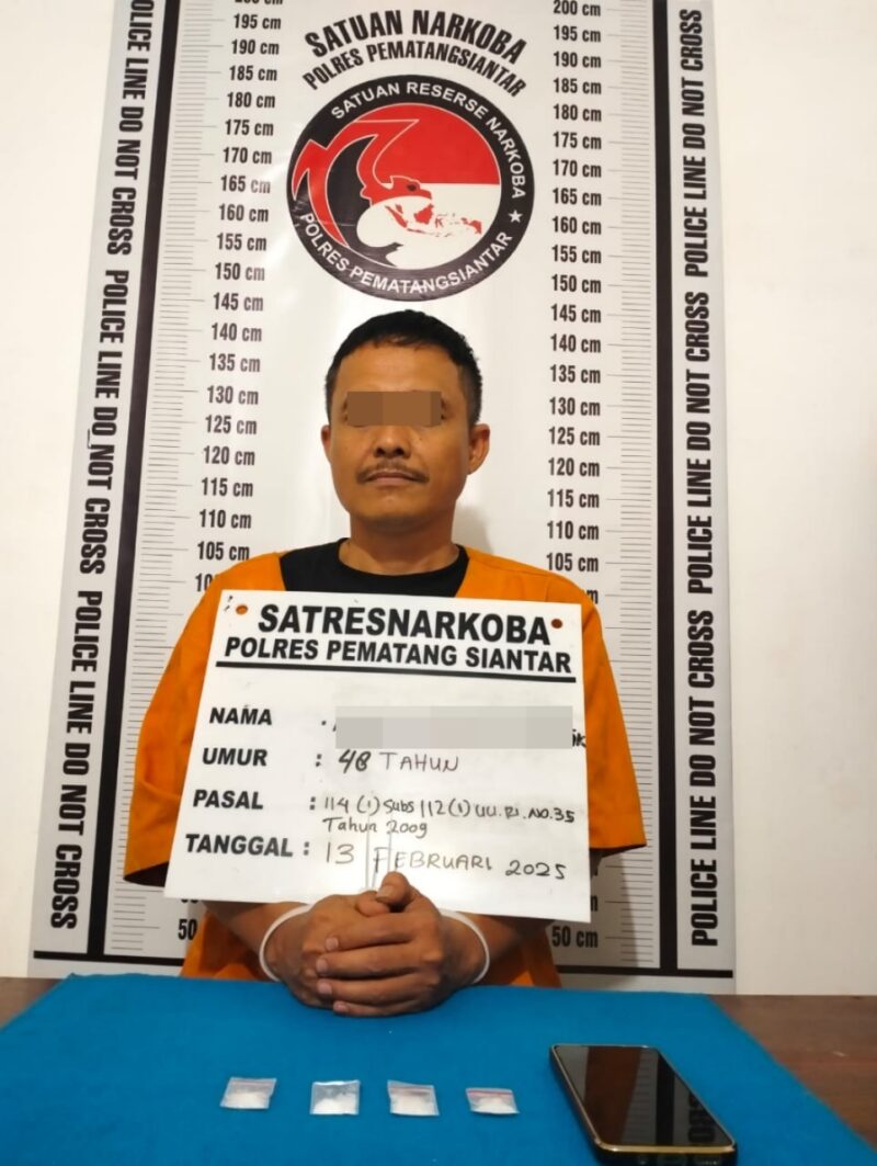 Kapolres Pematangsiantar AKBP Yogen Heroes Baruno SH. SIK melalui Kepala satuan (Kasat) Resnarkoba AKP JH. Pardede SH dikonfirmasi pada Jumat (14/2/2025 pagi) mengatakan tersangka itu berinisial RTS (48) warga Jalan Gereja, Kelurahan Martimbang, Kecamatan Siantar Selatan, Kota pematangsiantar.