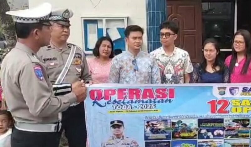 TIMELINES INEWS INVESTIGASI, Deli Serdang Dalam rangka Operasi Keselamatan Toba 2025, Satuan Lalu Lintas (Satlantas) Polresta Deli Serdang menggelar sosialisasi dan edukasi keselamatan berkendara kepada jemaat Gereja HKBP di Jalan Imam Bonjol, Kecamatan Lubuk Pakam, pada Minggu (16/2/2025).