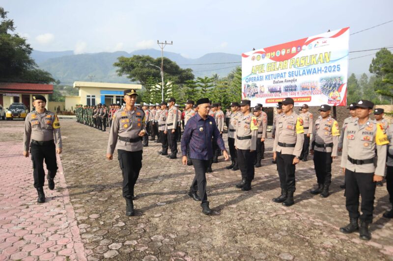 TLii | Aceh | Gayo lues — Dalam rangka pengamanan Hari Raya Idul Fitri 1446 H tahun 2025, Polres Gayo Lues menggelar Apel Gelar Pasukan Operasi Ketupat Seulawah 2025. Apel yang dilaksanakan di Lapangan Mapolres Gayo Lues ini dipimpin langsung oleh Bupati Gayo Lues, Suhaidi S.Pd., M.Si. selaku Inspektur Upacara, didampingi oleh Kapolres Gayo Lues, AKBP Setiyawan Eko Prasetiya, S.H., S.I.K., Kamis, 20 Maret 2025.