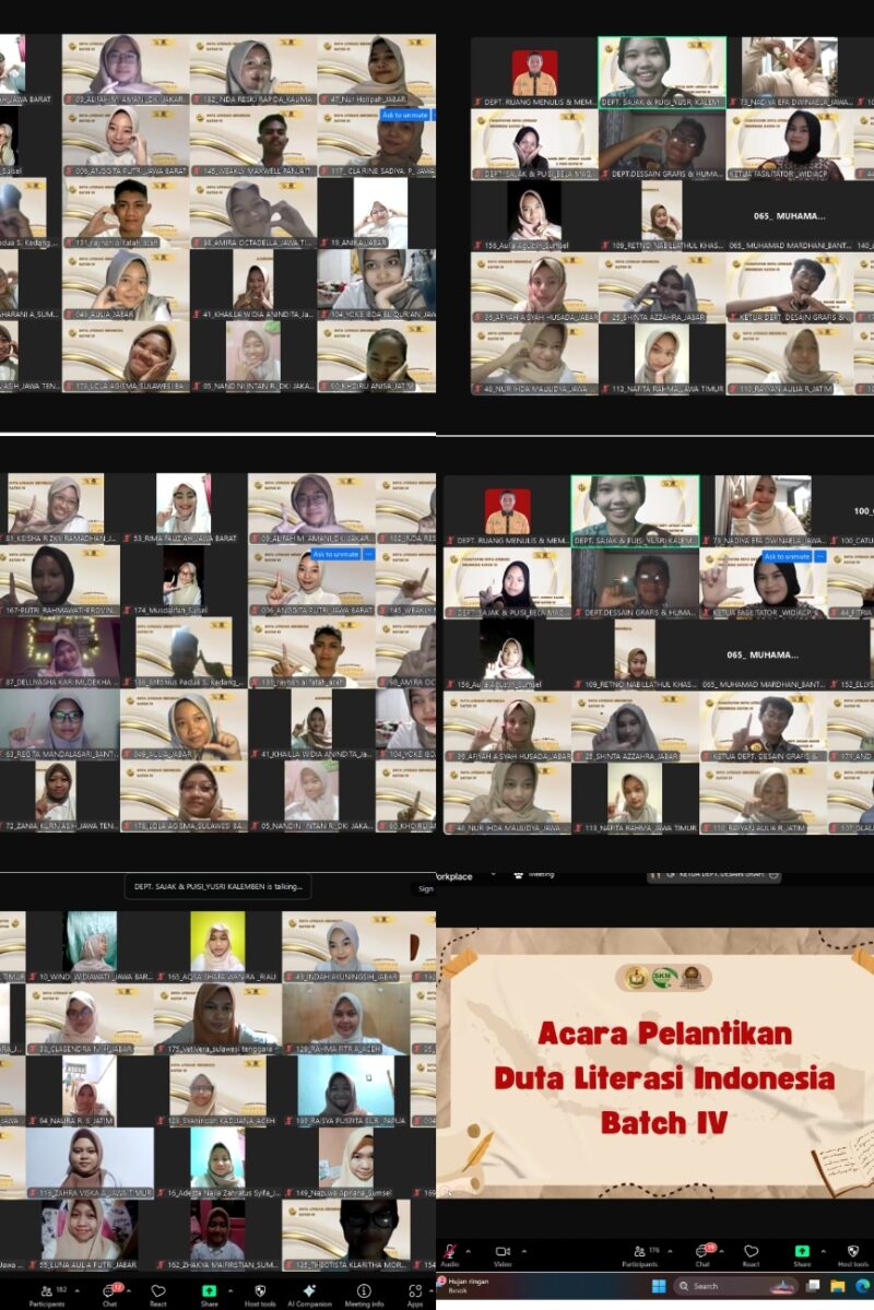 Sebanyak 194 pemuda pemudi dari berbagai daerah di Indonesia resmi dikukuhkan sebagai Duta Literasi Indonesia Arunika Baswara Batch IV Tahun 2025 yang digelar secara daring melalui platform zoom meeting pada hari ( Minggu 06/04/2025 pukul 19.00 WIB).