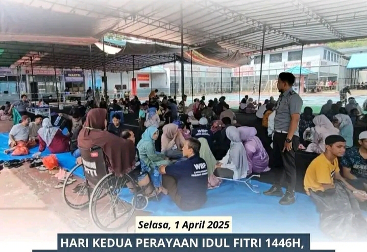 Suasana penuh haru dan kebahagiaan mewarnai Lembaga Pemasyarakatan (Lapas) Kelas IIB Padangsidimpuan saat momen perayaan Idulfitri 1446 Hijriyah hari kedua, Ratusan keluarga Warga Binaan Pemasyarakatan (WBP) memadati area kunjungan untuk bertemu dan merayakan hari kemenangan bersama orang-orang tercinta yang tengah menjalani pembinaan di dalam Lapas. Selasa (01/04).