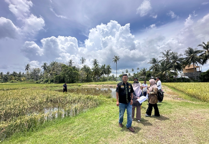 Dr. Muhammad Redha Valevi, SHI, MH selaku Ketua Majelis Hakim didampingi Fadhlia, S.Sy. dan Nurul Husna SH masing-masing Hakim Anggota melaksanakan Sidang Pemeriksaan Setempat (Descente) sengketa perkara kewarisan Nomor 433/Pdt.G/2024/MS.Jth di Gampong Tanjung Dayah Kecamatan Darussalam, Kabupaten Aceh Besar, Kamis (11/04/2025).
