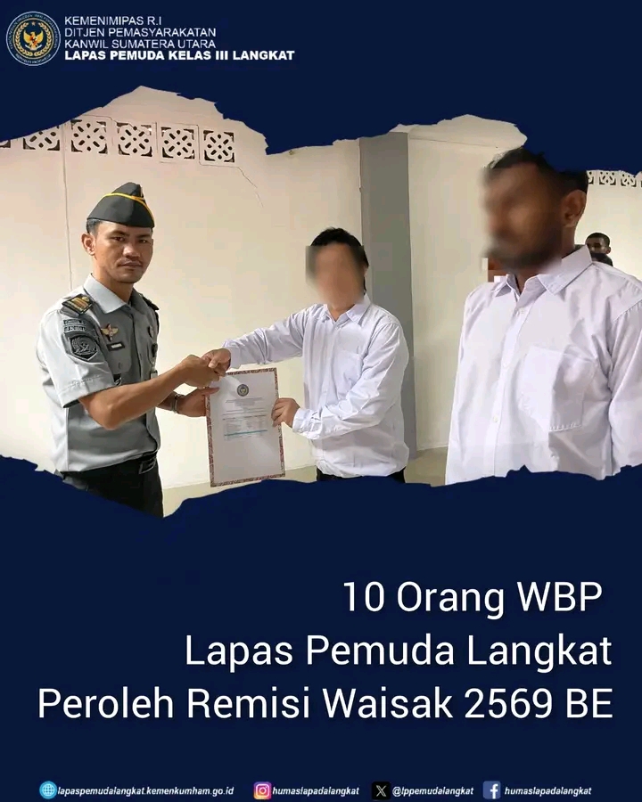 TIMELINES INEWS INVESTIGASI Langkat Sebanyak Sepuluh Warga Binaan Pemasyarakatan (WBP) beragama Buddha di Lapas Pemuda Kelas III Langkat mendapatkan remisi (pengurangan masa hukuman) dalam rangka memperingati Hari Raya Waisak 2569 BE Tahun 2025, Senin, (12/05/2025).