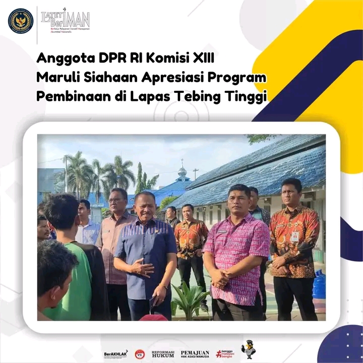 TIMELINES INEWS INVESTIGASI, Tebing Tinggi Lembaga Pemasyarakatan (Lapas) adalah bagian penting dari sistem hukum kita. Kita harus memastikan bahwa fasilitas, pelayanan, dan pembinaan di Lapas berjalan dengan optimal demi mendukung reintegrasi sosial. Kami hadir disini untuk melihat kondisi Lapas Tebing Tinggi dan mendengarkan aspirasi dari semuanya untuk Pemasyarkatan yang lebih baik” Ujar Anggota Komisi XIII DPR RI, Maruli Siahaan.