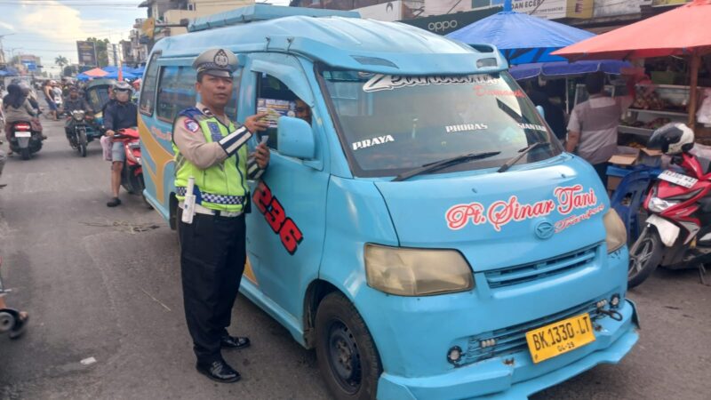 TLii|SUMUT|SIANTAR|Satuan Lalulintas (Sat Lantas) Polres Pematangsiantar melalui Kanit Kamsel IPDA Serly Tarigan SH bersama personil memberikan himbauan dan edukasi kepada pedagang disepuaran Pasar Dwikora Parluasan, Jl. Patuan Nagari Kelurahan Sukadame, Kecamatan Siantar Utara, Kota Pematangsiantar, pada Kamis 15 Mei 2025 siang pukul 13.00 WIB.