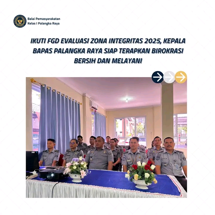 TIMELINES INEWS INVESTIGASI Palangka raya Balai Pemasyarakatan (Bapas) Kelas I Palangka Raya mengikuti kegiatan Focus Group Discussion (FGD) sebagai bagian dari rangkaian persiapan menuju penilaian pembangunan Zona Integritas (ZI). Kegiatan yang dilaksanakan secara daring ini diikuti oleh Kepala Bapas Kelas I Palangka Raya, Theo Adrianus, beserta Tim Pembangunan ZI.