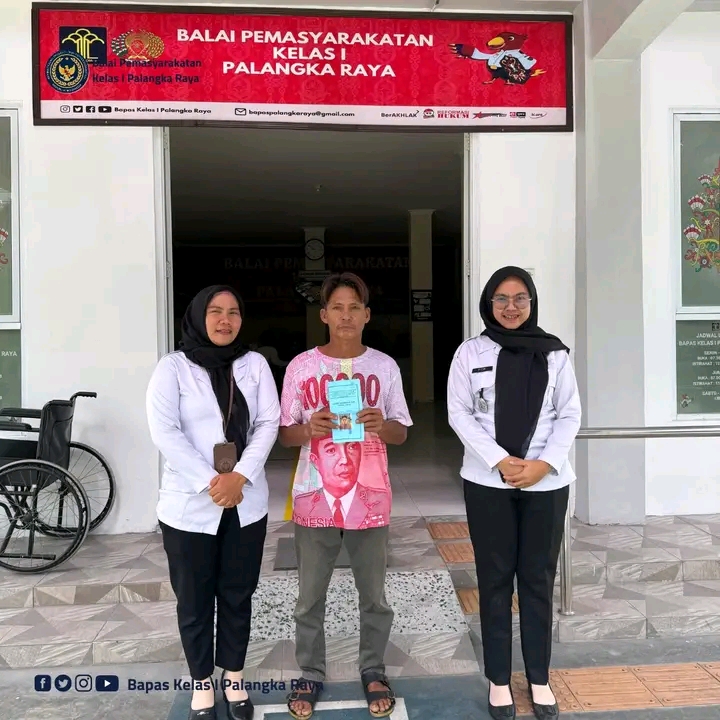 Palangka raya 21 Mei 2025 Balai Pemasyarakatan (Bapas) Kelas I Palangka Raya resmi mengakhiri masa bimbingan terhadap satu orang klien Pembebasan Bersyarat (PB) atas nama Abdullah Bin Madu Biduin. Klien yang dibimbing oleh Asisten Pembimbing Kemasyarakatan (APK), Lisa Dewi, tersebut dinyatakan telah menyelesaikan seluruh ketentuan masa bimbingan tanpa pelanggaran yang berpotensi menyebabkan pencabutan PB.