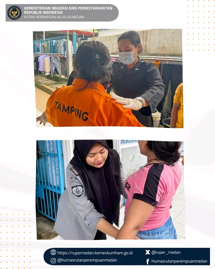 Medan Untuk menjaga kestabilan keamanan dan ketertiban, Rumah Tahanan Negara Perempuan Kelas IIA Medan menggelar razia pada Kamis (20/05). Razia kali ini dilaksanakan pada blok hunian Kartini kamar 3D. Kegiatan razia dilaksanakan rutin minimal 2x seminggu sebagai bagian dari komitmen untuk memberantas peredaran handphone, pungli, dan narkoba (halinar) di dalam lingkungan rutan. Upaya ini juga menunjukkan keseriusan Rutan Perempuan Kelas IIA Medan dalam menciptakan lingkungan yang aman dan kondusif, baik bagi warga binaan maupun petugas.