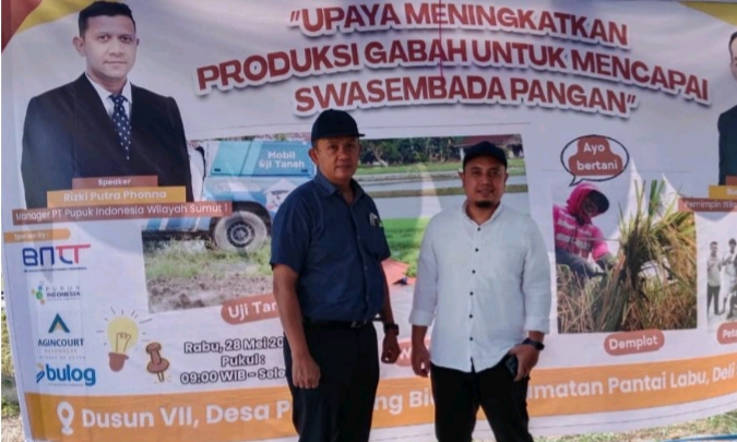 Kegiatan ini bertujuan memperkuat produksi gabah petani lokal dalam rangka mendukung terwujudnya swasembada pangan di wilayah Sumatera Utara. Turut hadir dalam acara ini, Pimpinan Perum Bulog Sumut Budi Cahyanto, Manajer PT Pupuk Indonesia Wilayah Sumut I Rizki Putra Phonna, serta perwakilan kelompok tani dari berbagai daerah.