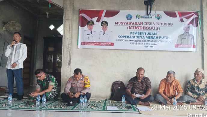 Timelinesinews.com_Rungkom, 23 Mei 2025 – Pemerintah Gampong Rungkom bersama tokoh masyarakat dan aparat terkait menyelenggarakan Musyawarah Desa dalam rangka pembentukan Koperasi Syariah Gampong “Merah Putih”. Kegiatan ini berlangsung pada pagi hari di Balai Gampong Rungkom.