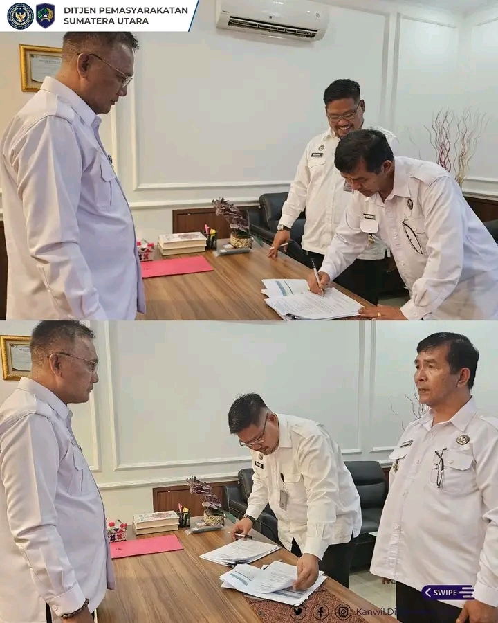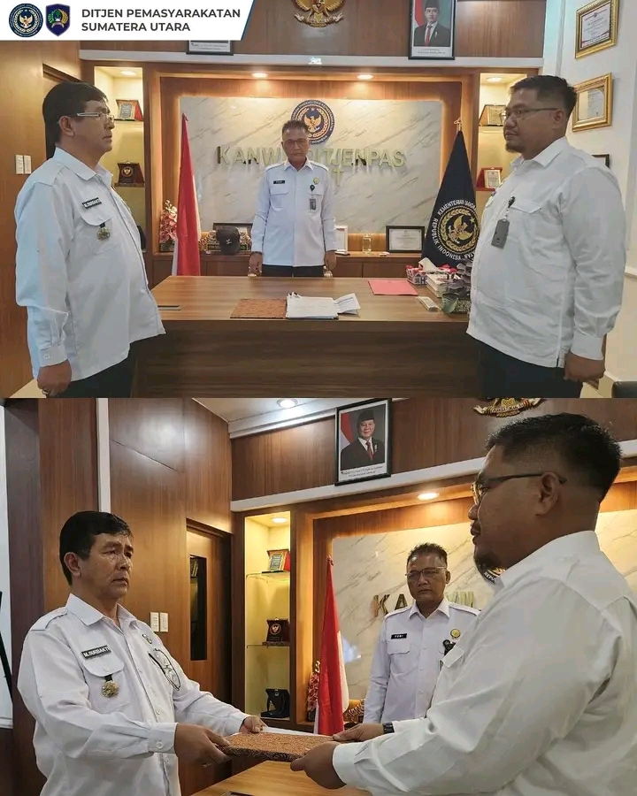 TIMELINES INEWS INVESTIGASI, Medan Kantor Wilayah Direktorat Jenderal Pemasyarakatan (Ditjenpas) Sumatera Utara hari ini melaksanakan acara Serah Terima Jabatan Pelaksana Tugas (Plt) Kepala Rumah Tahanan Negara Kelas IIB Sipirok. Jabatan diserahterimakan dari Bapak Muslim Surbakti kepada Bapak Eben Heazer Depari, dalam suatu prosesi yang berlangsung dengan khidmat dan penuh makna, pada Jum’at (16/05).