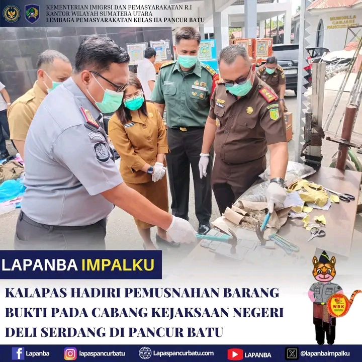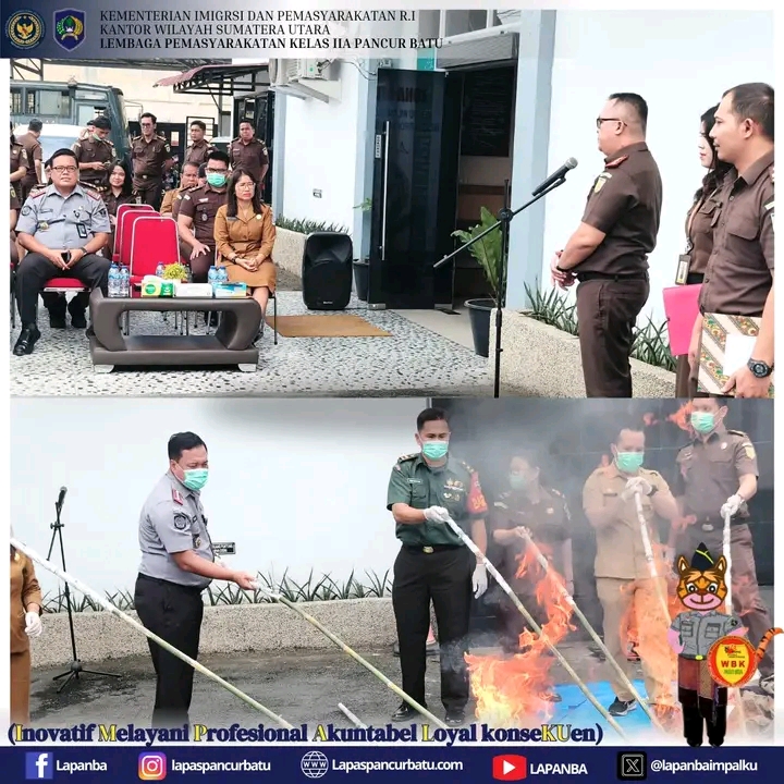 TIMELINES INEWS INVESTIGASI Lapas Pancur Batu Kepala Lembaga Pemasyarakatan Kelas IlA Pancur Batu, Tribowo turut menghadiri undangan acara pemusnahan barang bukti pada Cabang Kejaksaan Negeri Deli Serdang di Pancur Batu, Senin (19/05). Forum Komunikasi Pimpinan Daerah (forkompimda) Pancur Batu juga turut hadir dalam acara tersebut.