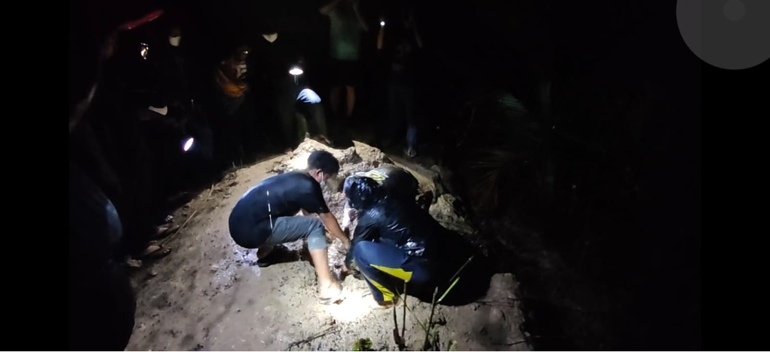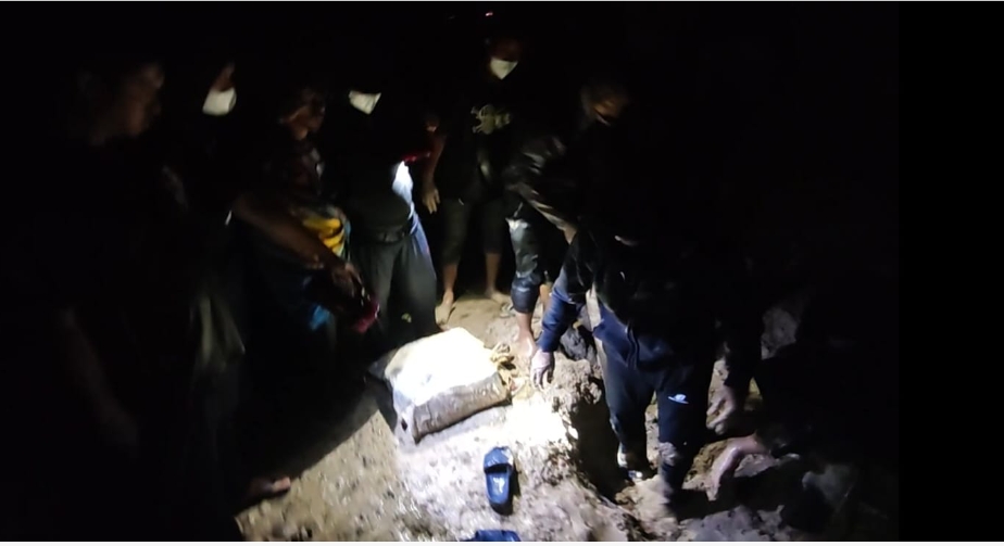 Selanjutnya, Tim bergerak melakukan penyisiran di tambak warga yang berlokasi di Sungai Pauh Kecamatan Langsa Barat Kota Langsa. Di lokasi ini temukan 4 (empat) karung yang ditanam/ditimbun secara tersebar.