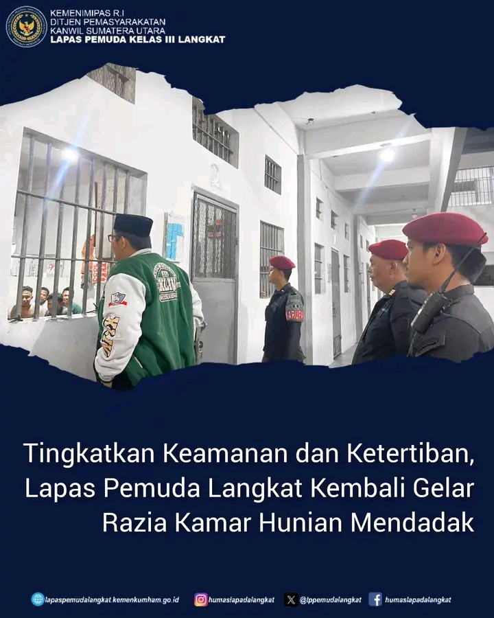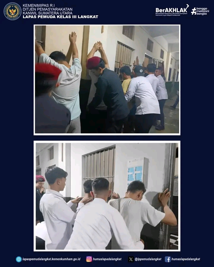 TIMELINES INEWS INVESTIGASI Langkat, 30 April 2025 Dalam rangka memperkuat keamanan dan ketertiban di lingkungan lembaga pemasyarakatan, Lapas Pemuda Kelas III Langkat kembali melaksanakan razia mendadak di blok-blok hunian warga binaan, Rabu (30/04). Kegiatan ini merupakan bentuk komitmen terhadap program Zero Halinar (tidak ada Handphone, Pungli, dan Narkotika) serta tindak lanjut dari arahan Direktorat Jenderal Pemasyarakatan dan Kementerian Imigrasi dan Pemasyarakatan.