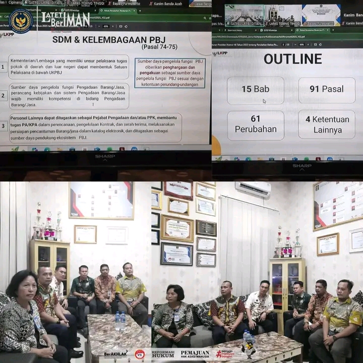 TIMELINES INEWS INVESTIGASI, Tebing Tinggi Lembaga Pemasyarakatan (Lapas) Kelas IIB Tebing Tinggi mengikuti kegiatan sosialisasi Peraturan Presiden (Perpres) Nomor 46 Tahun 2025 tentang pengadaan barang dan jasa, serta proses pembayaran melalui akun INAPROC e-Katalog versi 6, Jum’at (17/5). Kegiatan ini dilaksanakan secara virtual dan diikuti dari ruang Kalapas Tebing Tinggi.