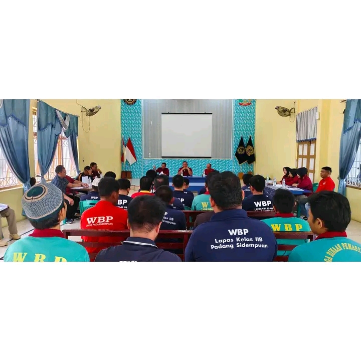 Sebanyak 18 (Delapas belas) orang warga binaan Lapas Kelas IIB Padangsidimpuan tampak memenuhi ruang aula Lapas Padangsidimpuan dalam rangka pelaksanaan Sidang TPP yang dipimpin langsung oleh Kalapas Padangsidimpuan, Mathrios Zulhidayat Hutasoit bersama Tim Pengamat Pemasyarakatan (TPP), wali pemasyarakatan dan assesor, Kamis (22/05/2025).