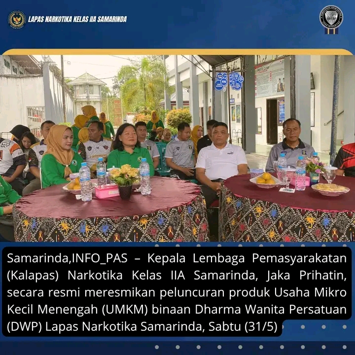 Samarinda, Kepala Lembaga Pemasyarakatan (Kalapas) Narkotika Kelas IIA Samarinda, Jaka Prihatin, secara resmi meresmikan peluncuran produk Usaha Mikro Kecil Menengah (UMKM) binaan Dharma Wanita Persatuan (DWP) Lapas Narkotika Samarinda, Sabtu (31/5/25)