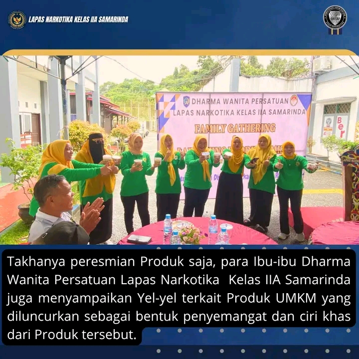 Tak hanya peresmian Produk saja, para Ibu-ibu Dharma Wanita Persatuan Lapas Narkotika  Kelas IIA Samarinda juga menyampaikan Yel-yel terkait Produk UMKM yang diluncurkan sebagai bentuk penyemangat dan ciri khas dari Produk tersebut.