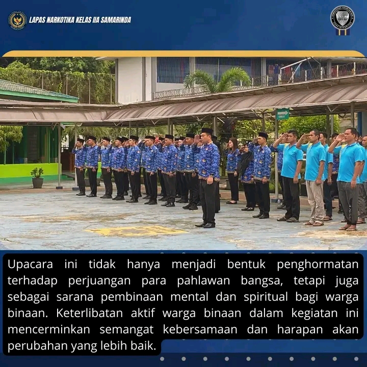 Upacara ini tidak hanya menjadi bentuk penghormatan terhadap perjuangan para pahlawan bangsa, tetapi juga sebagai sarana pembinaan mental dan spiritual bagi warga binaan. Keterlibatan aktif warga binaan dalam kegiatan ini mencerminkan semangat kebersamaan dan harapan akan perubahan yang lebih baik.