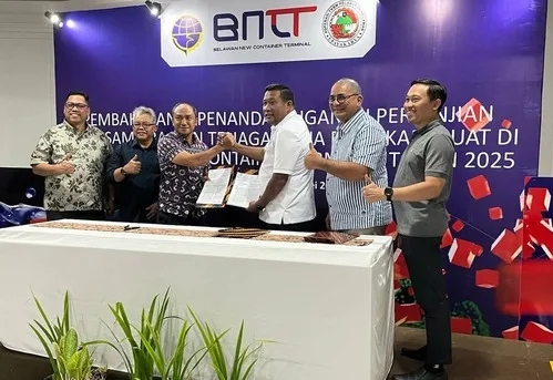 TIMELINES INEWS INVESTIGASI Belawan 01 Mei 2025 Bertepatan dengan peringatan Hari Buruh Internasional (May Day) 2025, Primer Koperasi Tenaga Kerja Bongkar Muat (Primkop TKBM) Pelabuhan Belawan dan PT Belawan New Container Terminal (BNCT) resmi menandatangani kesepakatan peningkatan tarif bongkar muat (BM) kontainer. Penandatanganan dilakukan di Kantor BNCT Belawan.