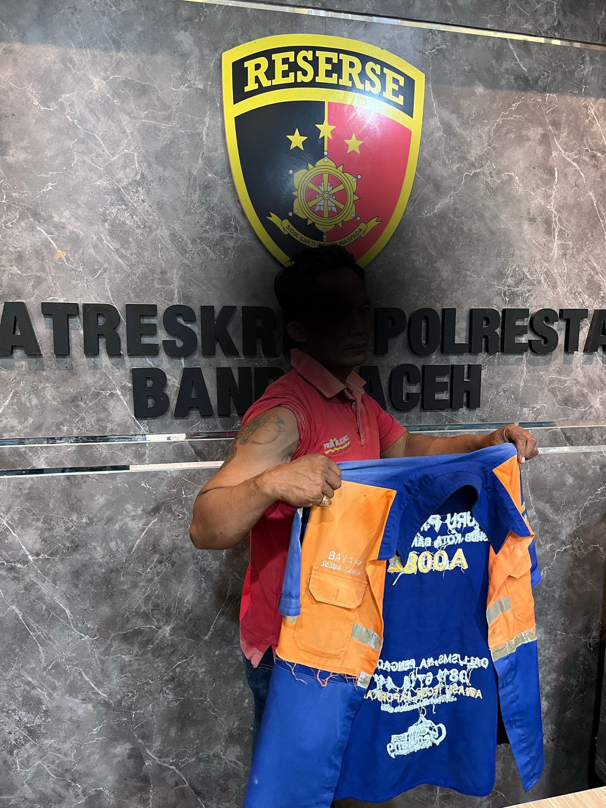 Dari tangan IR, petugas menyita satu helai baju bertuliskan juru parkir yang merupakan baju milik orang lain. Dari sini, setelah dilakukan interogasi ternyata IR bukan petugas resmi dari Dinas Perhubungan Kota Banda Aceh atau jukir tak resmi, tutur Kasatreskrim.