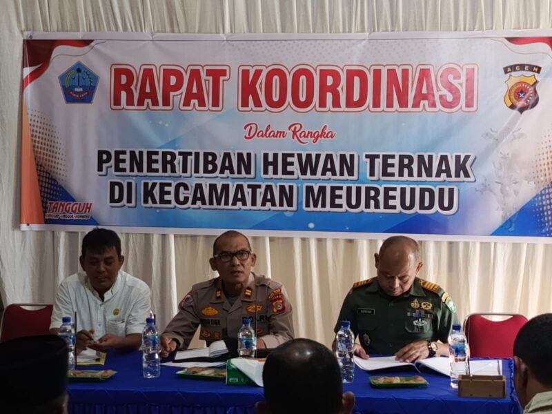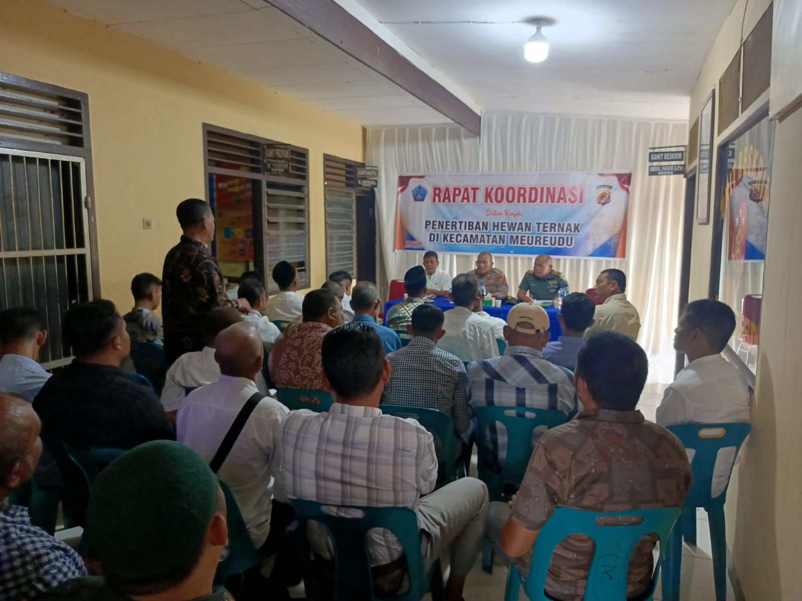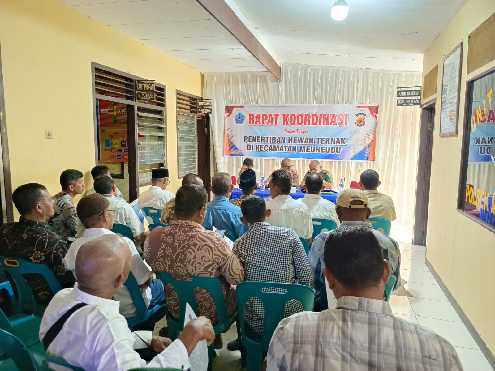 Timelinesinews.com.PIDIE JAYA– Menindaklanjuti aspirasi masyarakat yang disampaikan dalam kegiatan Jumat Curhat bersama Kapolres Pidie Jaya AKBP Ahmad Faisal Pasaribu, S.H., S.I.K., M.H., jajaran Musyawarah Pimpinan Kecamatan (Muspika) Meureudu menggelar Rapat Koordinasi Penertiban Hewan Ternak pada Rabu (14/5/2025) pukul 09.30 WIB di Aula Polsek Meureudu.