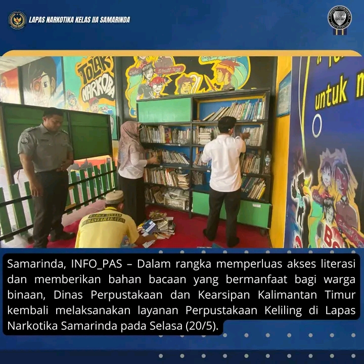 TIMELINES INEWS INVESTIGASI Samarinda, Dalam rangka memperluas akses literasi dan memberikan bahan bacaan yang bermanfaat bagi warga binaan, Dinas Perpustakaan dan Kearsipan Kalimantan Timur kembali melaksanakan layanan Perpustakaan Keliling di Lapas Narkotika Samarinda, Selasa (20/5/25)