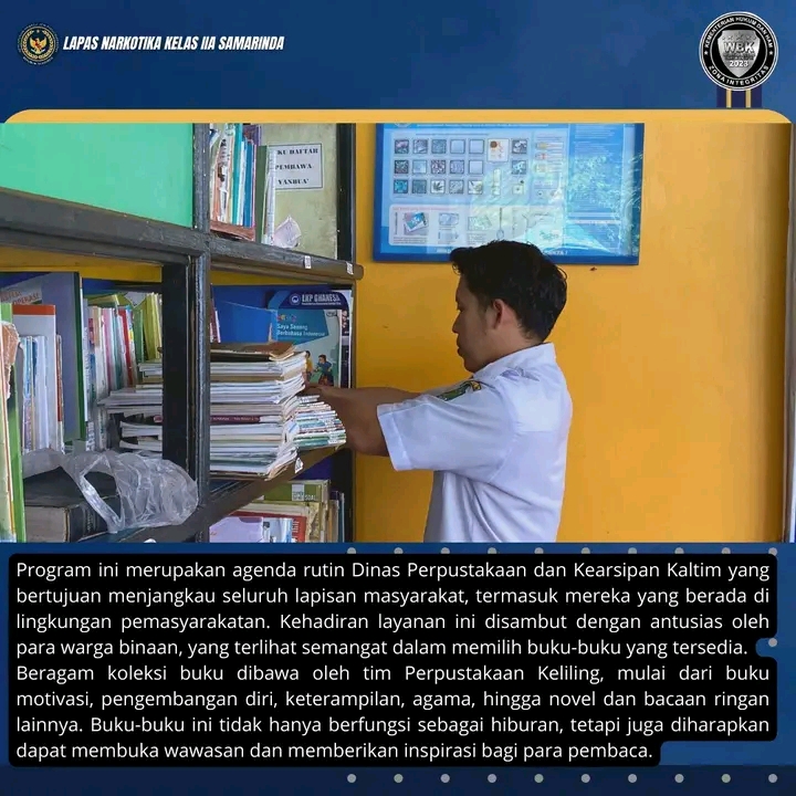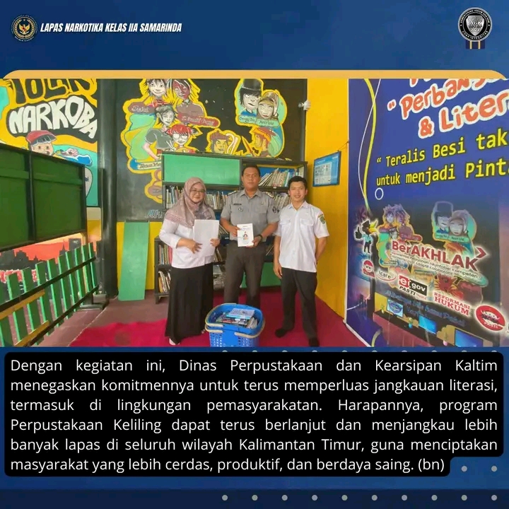 Program ini merupakan agenda rutin Dinas Perpustakaan dan Kearsipan Kaltim yang bertujuan menjangkau seluruh lapisan masyarakat, termasuk mereka yang berada di lingkungan pemasyarakatan. Kehadiran layanan ini disambut dengan antusias oleh para warga binaan, yang terlihat semangat dalam memilih buku-buku yang tersedia.