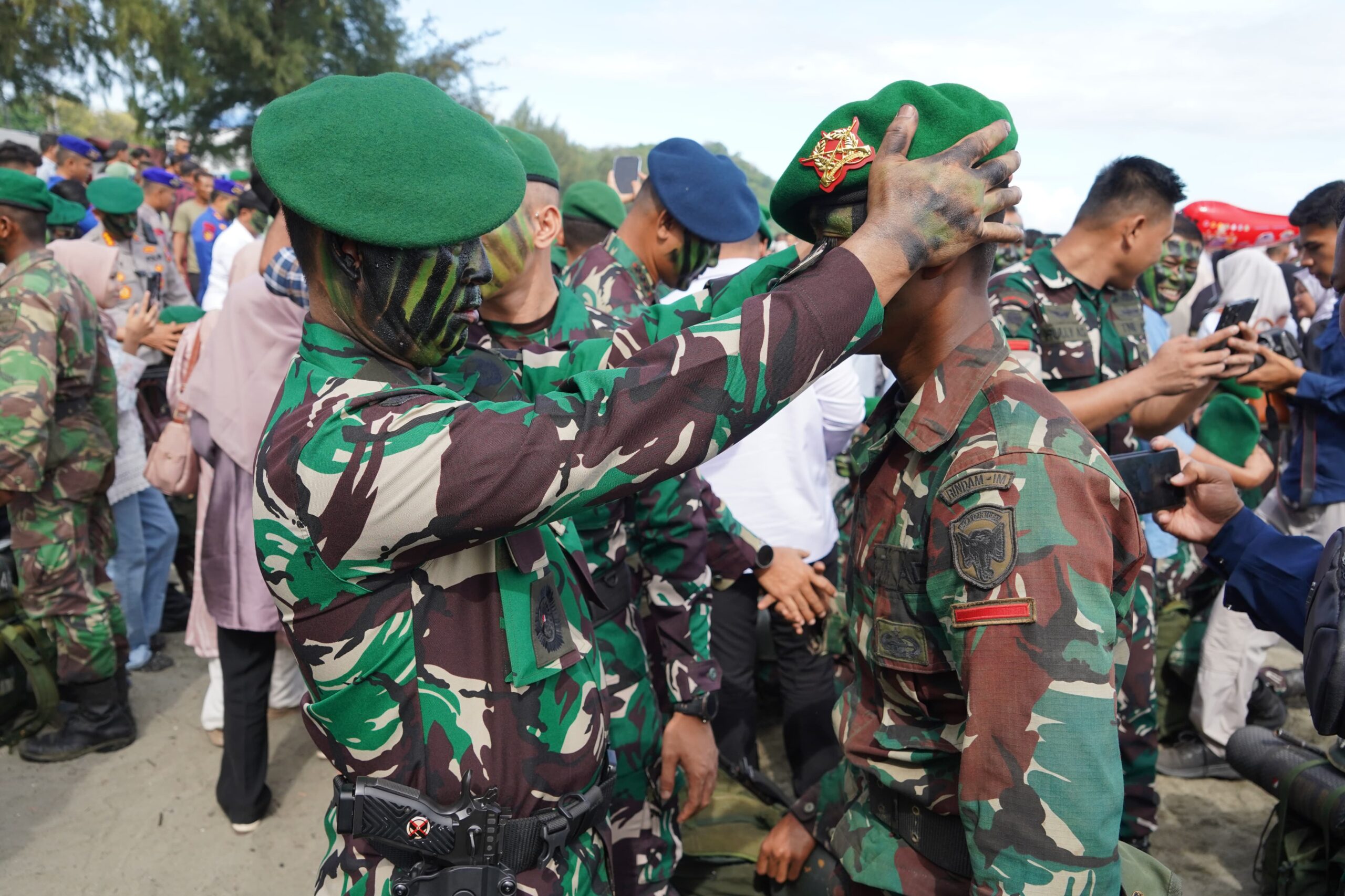 TIMELINES INEWS INVESTIGASI Aceh Besar – Kepala Staf Komando Daerah Militer Iskandar Muda (Kasdam IM) Brigadir Jenderal TNI Ayi Supriatna, S.I.P., M.M., mewakili Pangdam Iskandar Muda Mayor Jenderal TNI Niko Fahrizal, M.Tr. (Han), bertindak selaku Inspektur Upacara pada kegiatan penutupan pendidikan sekaligus tradisi pembaretan Yudhawastu Pramuka bagi para prajurit Abituren Dikjurba Dikmaba TNI AD Gelombang II TA 2024 (overloop) yang berjumlah 386 orang dan Abituren Dikjurta Dikmata TNI AD Gelombang I TA 2025 yang berjumlah 670 orang. Kegiatan ini digelar di kawasan Pantai Ujung Batee, Kabupaten Aceh Besar, pada Kamis (22/5/2025).