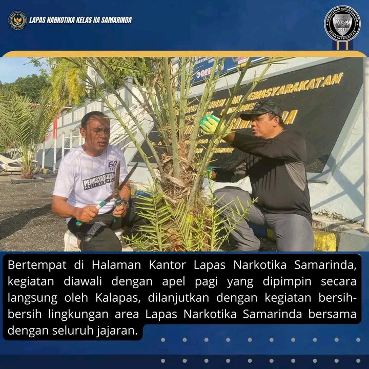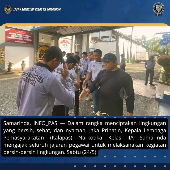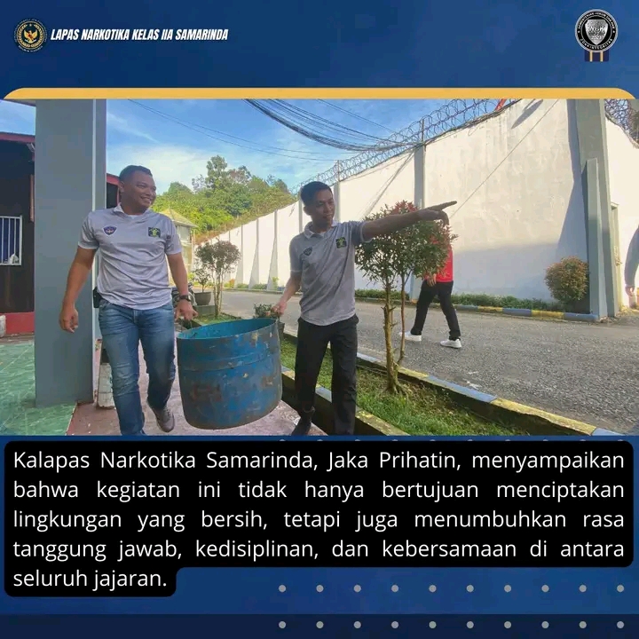 TIMELINES INEWS INVESTIGASI Samarinda, Dalam rangka menciptakan lingkungan yang bersih, sehat, dan nyaman, Jaka Prihatin, Kepala Lembaga Pemasyarakatan (Kalapas) Narkotika Kelas IIA Samarinda mengajak seluruh jajaran pegawai untuk melaksanakan kegiatan bersih-bersih lingkungan. Sabtu (24/5/25)