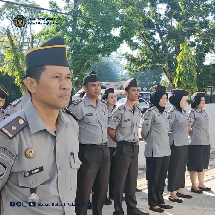 Palangka Raya, 16 Juni 2025 Mengawali pekan dengan penuh rasa syukur dan semangat kerja, Balai Pemasyarakatan (Bapas) Kelas I Palangka Raya melaksanakan apel pagi di halaman kantor pada Senin (16/06/2025). Kegiatan rutin ini diikuti oleh seluruh jajaran pegawai dan dipimpin langsung oleh Kepala Bapas, Theo Adrianus.