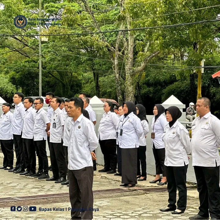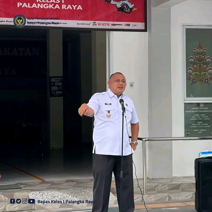 TIMELINES INEWS INVESTIGASI, Palangka Raya, 11 Juni 2025 Balai Pemasyarakatan (Bapas) Kelas I Palangka Raya melaksanakan apel pagi rutin yang diikuti oleh seluruh pegawai bertempat di halaman kantor Bapas Palangka Raya, Rabu (11/06). Kegiatan ini dipimpin langsung oleh Kepala Bapas Palangka Raya, Theo Adrianus, yang bertindak sebagai pembina apel.