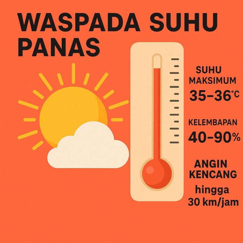 TLii [] Banda Aceh — 30 Juni 2025, BMKG mengimbau masyarakat Aceh untuk meningkatkan kewaspadaan terhadap suhu panas ekstrem dan angin kencang selama puncak musim kemarau yang berlangsung dari Juni hingga Agustus 2025. Suhu udara tercatat mencapai 35–36°C dengan kelembapan udara 40–90% dan kecepatan angin hingga 30 km/jam.