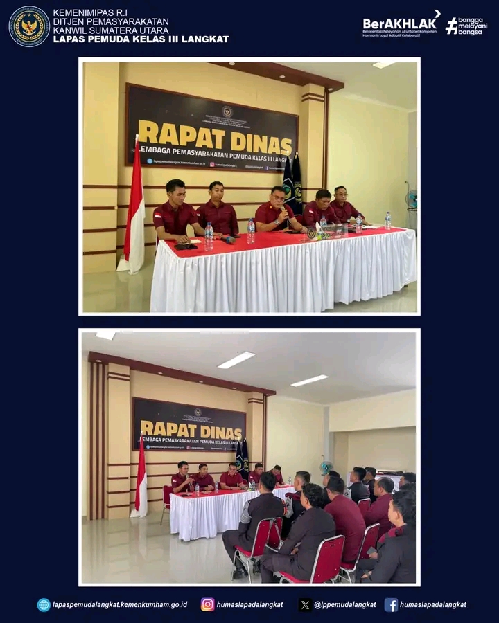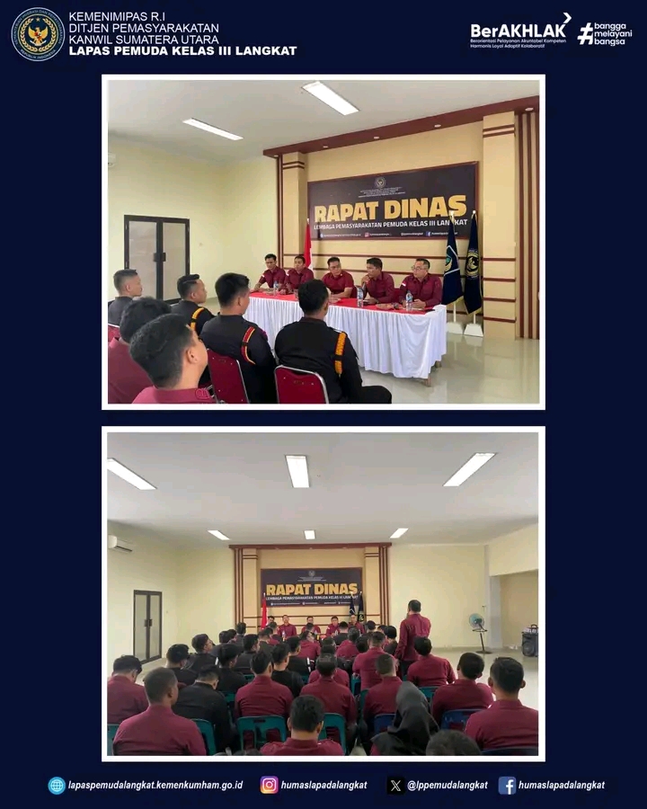 TIMELINES INEWS INVESTIGASI, Langkat Dalam rangka memperkuat pelaksanaan tugas dan fungsi pemasyarakatan yang profesional, integritas, dan bebas dari penyimpangan, Kepala Lapas Pemuda Kelas III Langkat, Kenal Purba gelar rapat penguatan tugas dan fungsi pemasyarakatan, Kamis (12/06/2025).