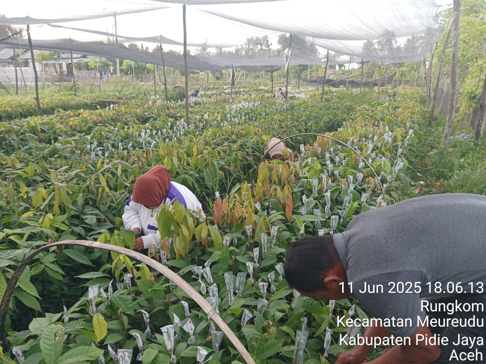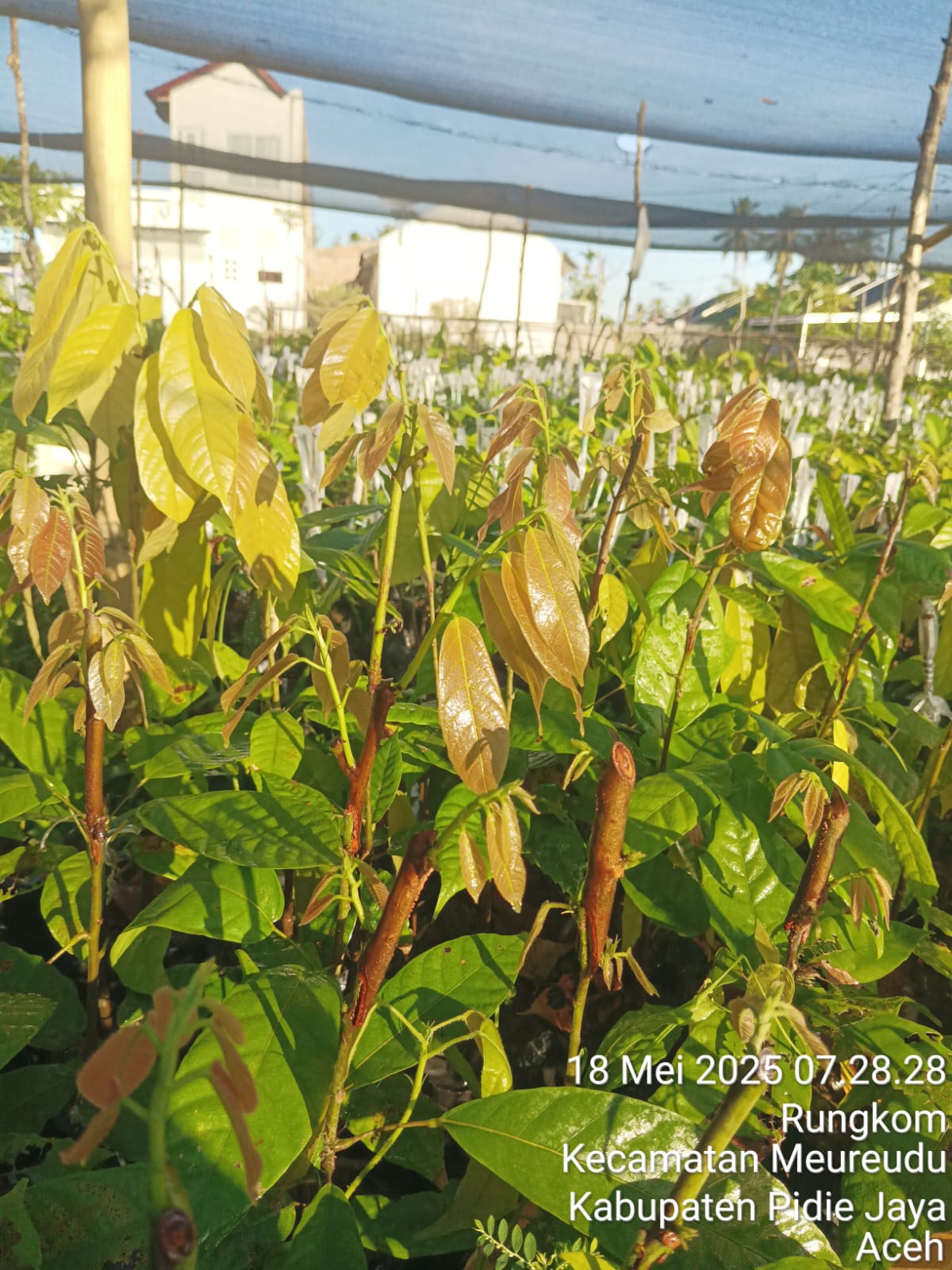 Di Desa Rungkom, Pidie Jaya, berdiri sebuah tempat persemaian kakao yang kian menunjukkan geliatnya. Persemaian ini bukanlah tempat biasa. Di sinilah bibit sambung unggulan dikembangkan, menggunakan teknik sambung pucuk yang telah terbukti meningkatkan produktivitas dan ketahanan tanaman kakao terhadap hama serta penyakit.