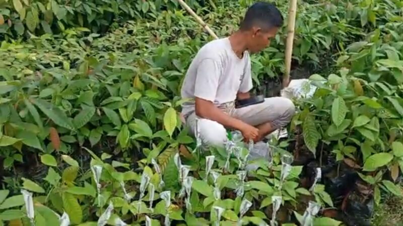 Sosok penting di balik keberhasilan persemaian ini adalah Hasriadi, yang akrab disapa Bang Ayi. Ia bukan hanya tukang sambung biasa, tapi seorang praktisi lapangan yang menguasai teknik budidaya dengan pengalaman bertahun-tahun. Lewat tangan terampilnya, ratusan bibit kakao tumbuh kuat dan siap ditanam di berbagai wilayah Pidie Jaya dan sekitarnya.