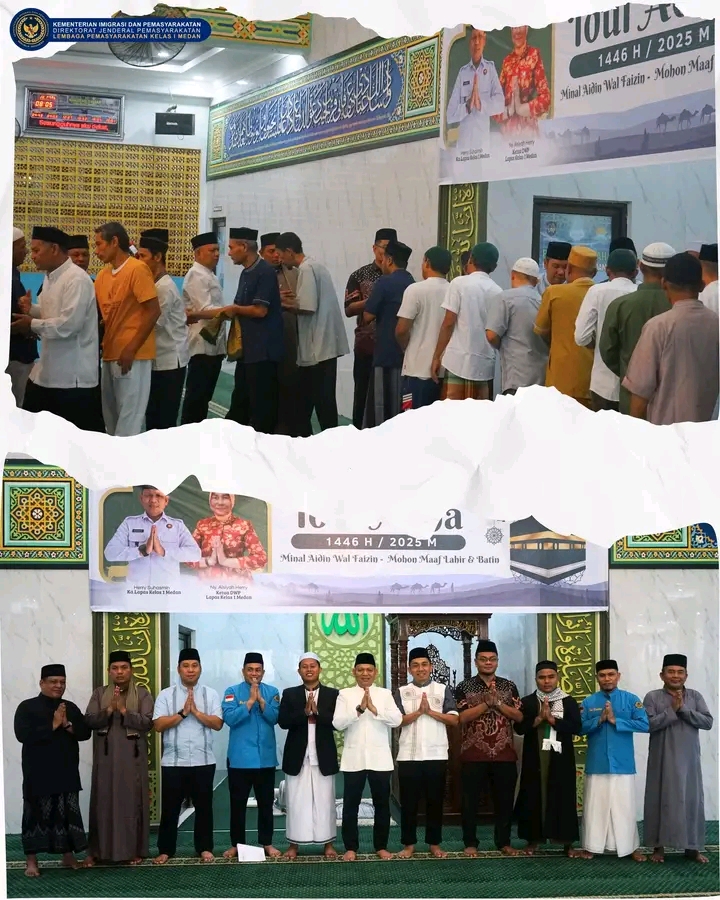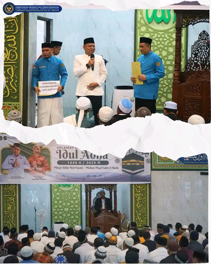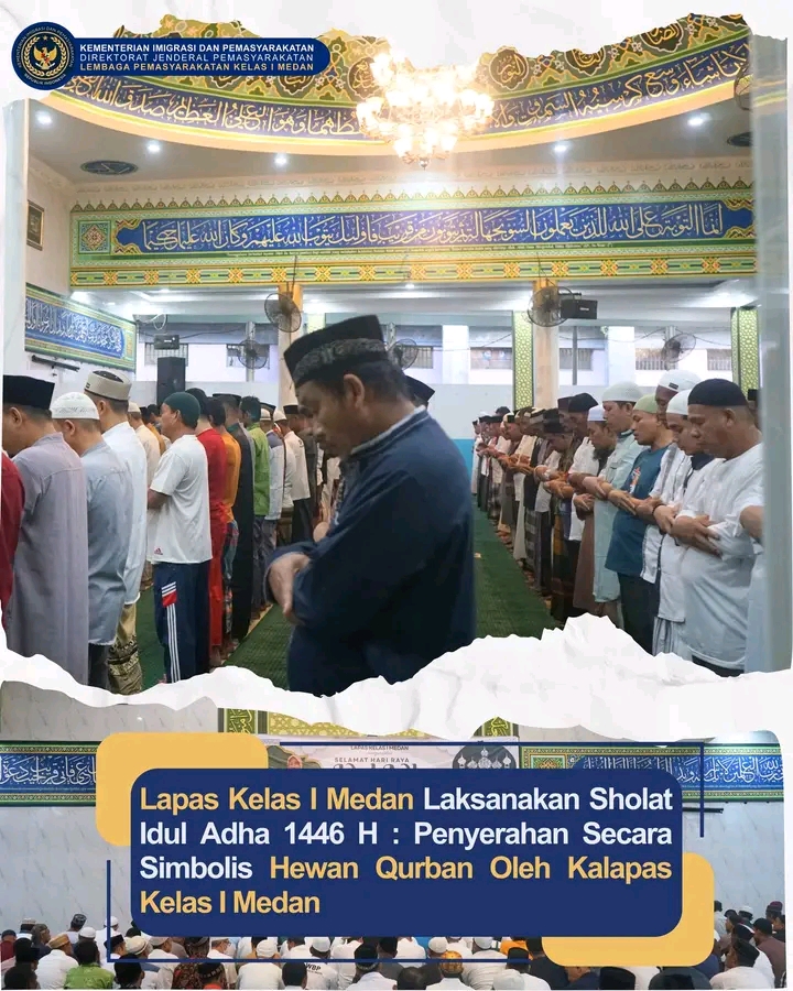 TIMELINES INEWS INVESTIGASI, Medan 06 Juni 2025 Lembaga Pemasyarakatan (Lapas) Kelas I Medan melaksanakan Sholat Idul Adha 1446 Hijriah pada Jumat (6/6/2025) dengan khidmat dan penuh makna. Kegiatan ini diikuti oleh jajaran petugas dan warga binaan pemasyarakatan (WBP) sebagai bentuk pengamalan nilai-nilai keagamaan serta penguatan kebersamaan di dalam lingkungan lapas.