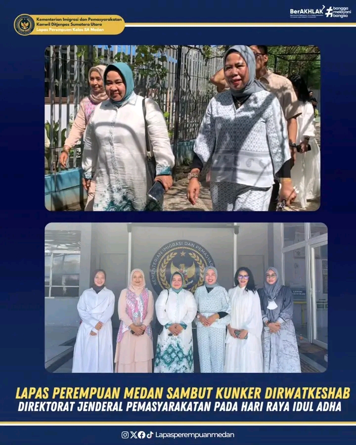 TIMELINES INEWS INVESTIGASI Medan Dalam rangka kegiatan monitoring dan evaluasi pelayanan Hari Raya Idul Adha 1446H/2025, Direktur Perawatan Kesehatan dan Rehabilitasi (Dirwatkeshab) Direktorat Jenderal Pemasyarakatan (Ditjenpas) Dr. dr. Adhayani Lubis melakukan kunjungan kerja di Lembaga Pemasyarakatan (Lapas) Perempuan Kelas IIA Medan, Jumat (06/06/25)