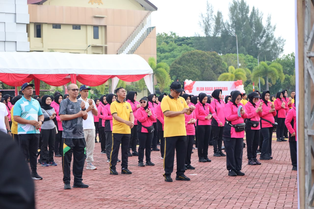 TLII>>Banda Aceh — Dalam rangka memeriahkan Hari Bhayangkara ke-79, Polda Aceh menggelar olahraga bersama di lapangan Polda Aceh, Rabu, 25 Juni 2025. Olahraga bersama itu diikuti oleh TNI-Polri, Pengurus Bhayangkari, kejaksaan, Dishub, Jasa Raharja, unsur Forkopimda, dan lembaga lainnya.