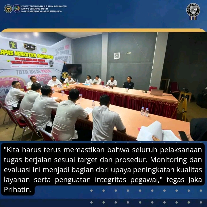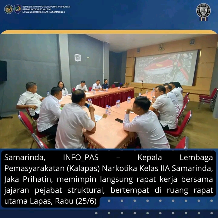 TIMELINES INEWS INVESTIGASI,  Samarinda, Kepala Lembaga Pemasyarakatan (Kalapas) Narkotika Kelas IIA Samarinda, Jaka Prihatin, memimpin langsung rapat kerja bersama jajaran pejabat struktural, bertempat di ruang rapat utama Lapas, Rabu (25/6/25)