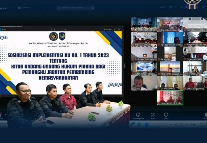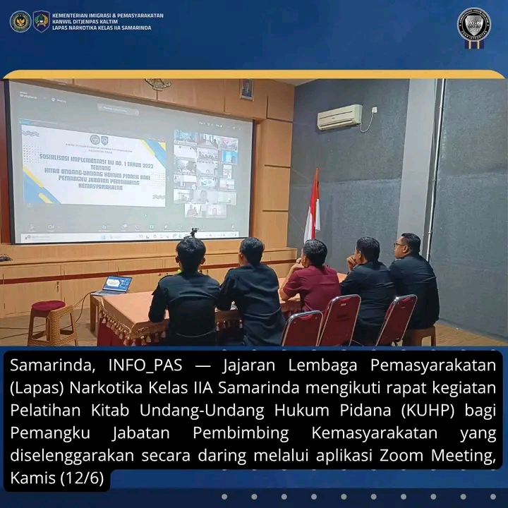TIMELINES INEWS INVESTIGASI Samarinda, Jajaran Lembaga Pemasyarakatan (Lapas) Narkotika Kelas IIA Samarinda mengikuti rapat kegiatan Pelatihan Kitab Undang-Undang Hukum Pidana (KUHP) bagi Pemangku Jabatan Pembimbing Kemasyarakatan yang diselenggarakan secara daring melalui aplikasi Zoom Meeting, Kamis (12/6)