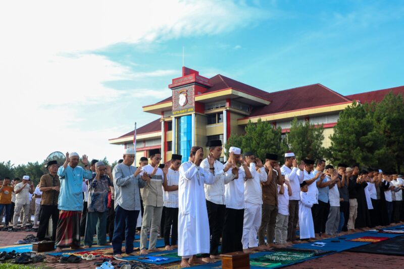 TLii|SUMUT|Medan – Pelaksanaan Shalat Idul Adha 1446 H/2025 M yang digelar pada Jumat, 6 Juni 2025 di wilayah hukum Polda Sumatera Utara berlangsung aman, tertib, dan kondusif. Ribuan umat Muslim menunaikan ibadah di berbagai masjid dan lapangan yang tersebar di seluruh daerah, dengan pengamanan ketat dari aparat gabungan.