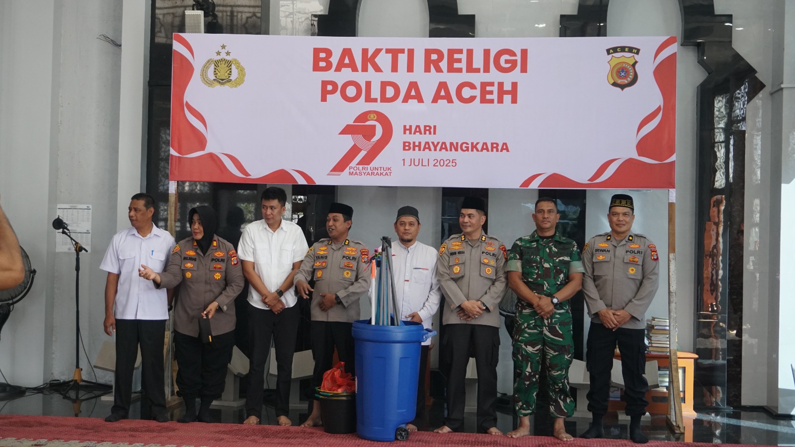 TLII>>Banda Aceh — Dalam rangka menyambut Hari Bhayangkara ke-79, Polda Aceh melalui Biro Logistik menggelar kegiatan Bakti Religi di Masjid Subulussalam PLTD Apung, Gampong Punge Blang Cut, Kecamatan Jaya Baru, Kota Banda Aceh, Rabu, 18 Juni 2025.