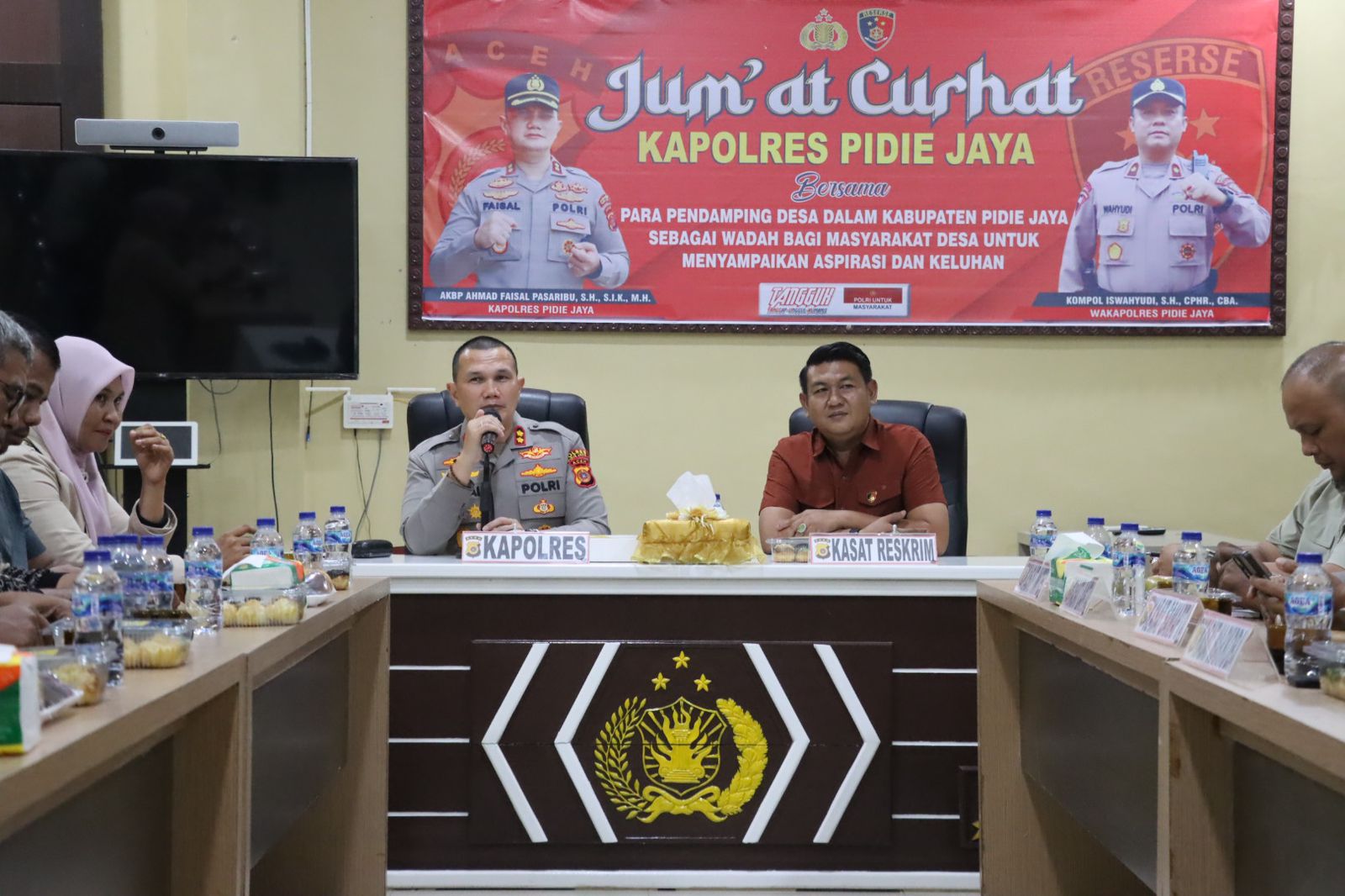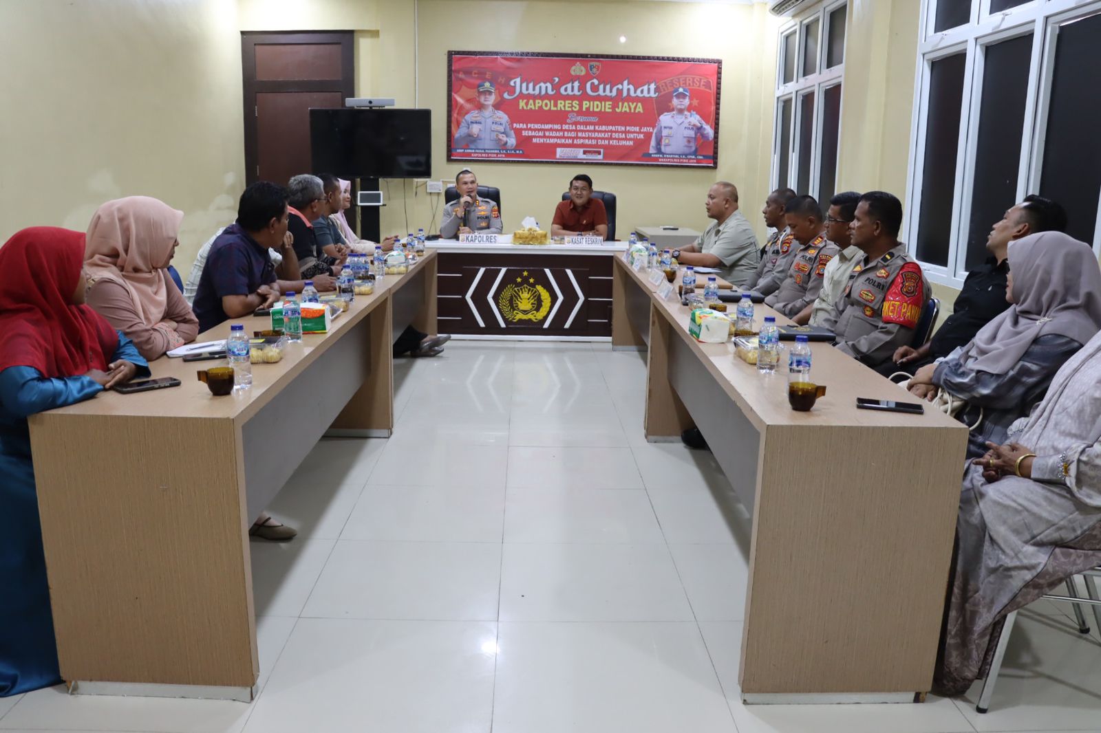 Timelinesinews.com.PIDIE JAYA– Polres Pidie Jaya menginisiasi forum Jumat Curhat bersama para pendamping desa sebagai langkah strategis untuk memperkuat transparansi dalam pengelolaan Anggaran Pendapatan dan Belanja Gampong (APBG).
