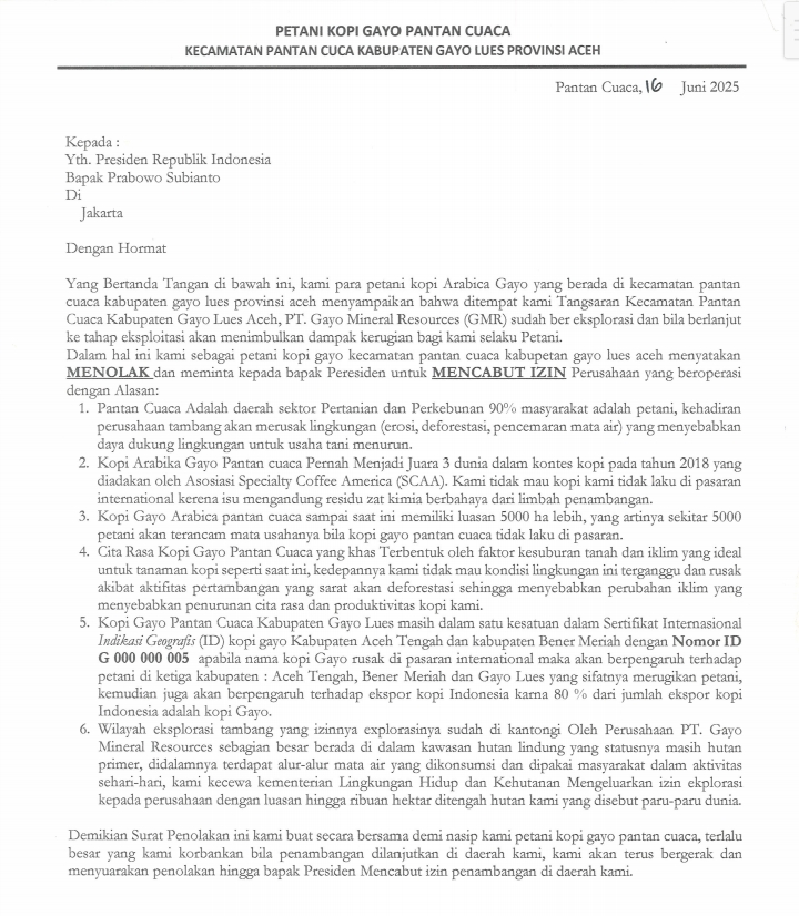 TLii | ACEH | GAYO LUES, Masyarakat Petani Kopi Pantan Cuaca,Gayo Lues menyoroti dampak lingkungan yang ditimbulkan oleh aktivitas pertambangan PT Gayo Mineral Resources (GMR) di Desa Pantan ,suri musara, Kecamatan Pantan Cuaca Kabupaten Gayo Lues Provensi Aceh kegiatan tambang di wilayah tersebut telah merusak ekosistem dan merampas hak dasar masyarakat atas air bersih.